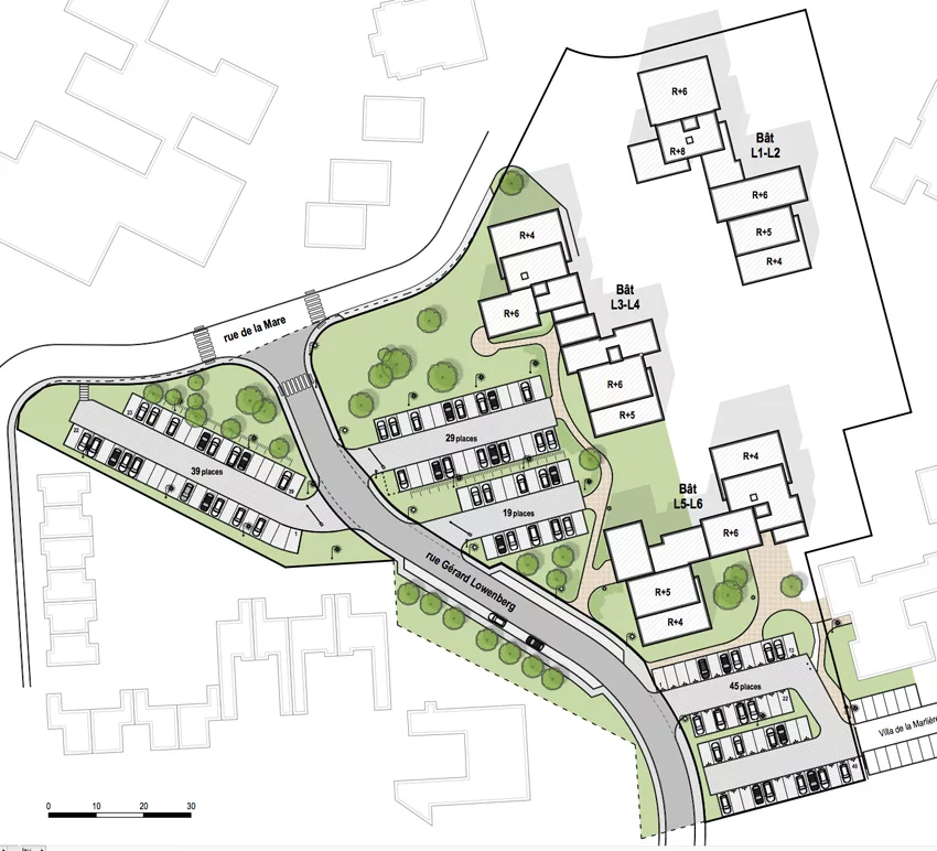 Le projet concerne la réhabilitation thermique de 150 logements occupés à Roissy-en-Brie. Les travaux incluent l’isolation par enduit mince, l’étanchéité des toitures-terrasses et balcons, le flocage des vide-sanitaires et la rénovation de la VMC. Les logements bénéficient de mises aux normes techniques (électricité, pièces humides, robinetterie, garde-corps). Les parties communes et parkings sont embellis et restructurés. Travaux en site occupé avec présence d’amiante.