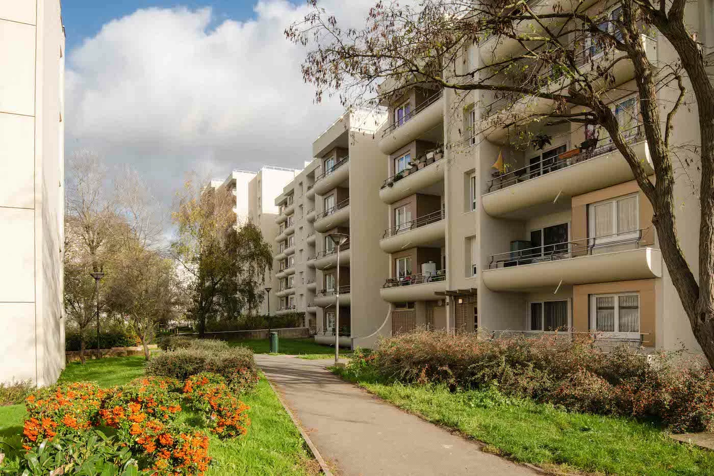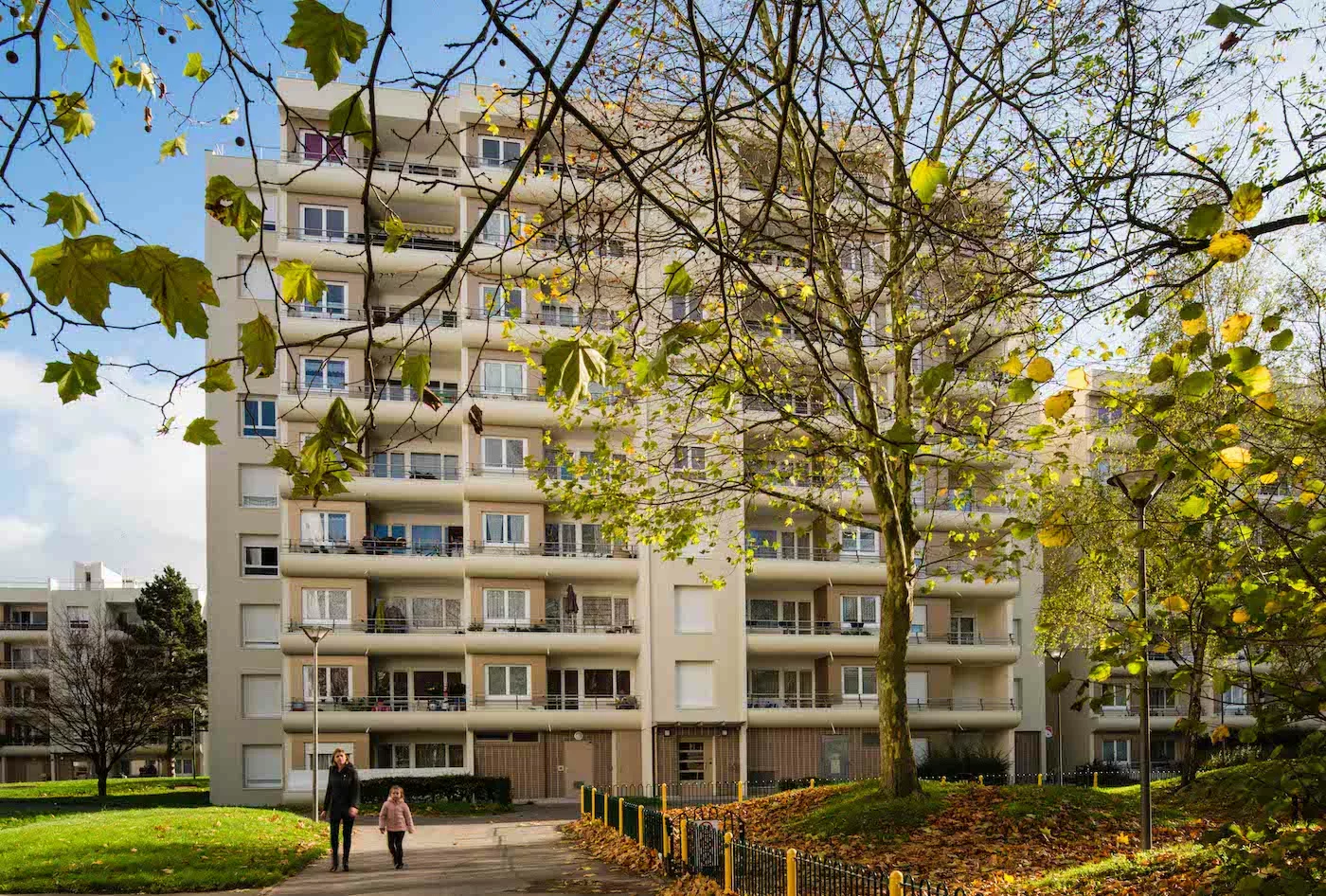 Le projet concerne la réhabilitation de 153 logements occupés à Villeparisis (77). Les travaux ont permis d’améliorer les performances thermiques grâce à une isolation par l’extérieur, le remplacement des menuiseries et la mise en place d’une ventilation hygroréglable B. Les consommations sont passées de 171 à 115 kWhEP/m².an, soit un gain d’une étiquette énergétique. L’opération comprend le ravalement des façades amiantées, la réfection de l’étanchéité, la rénovation des logements et l’embellissement des parties communes. Travaux en site occupé, présence d’amiante.