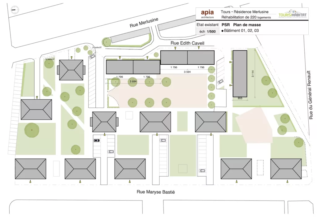 Le projet concerne la réhabilitation thermique de 220 logements occupés à Tours (37), certifiée Cerqual Patrimoine Habitat & Environnement. Les travaux visent l’amélioration énergétique du bâti avec isolation des façades amiantées, des combles et sous-sols, ainsi que le remplacement des menuiseries et garde-corps. Le programme comprend la mise en place d’un ascenseur, la réfection de la couverture et la modernisation des logements avec VMC, mise aux normes électriques et agrandissement des cuisines. Travaux en site occupé.