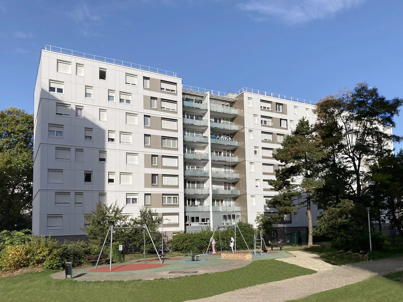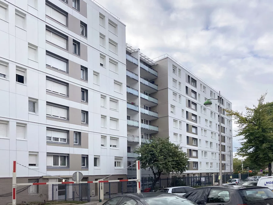 Le projet concerne la réhabilitation thermique de 270 logements occupés à Sevran (93), dans le cadre du NPNRU. L’opération vise une amélioration énergétique avec isolation par l’extérieur, bardage, étanchéité des toitures-terrasses, fermeture des loggias et installation de 280 m² de panneaux photovoltaïques. Les parties communes sont rénovées avec réfection des halls, interphonie et gaines techniques. Les logements bénéficient d’une mise aux normes électriques Label Promotelec et d’une ventilation hygro A. Travaux en site occupé, présence d’amiante. Certification : Promotelec Rénovation Responsable – Étiquette B.