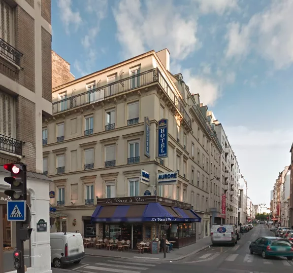 Menuiseries bois côté rue avec stores occultants, aluminium pliantes côté cour