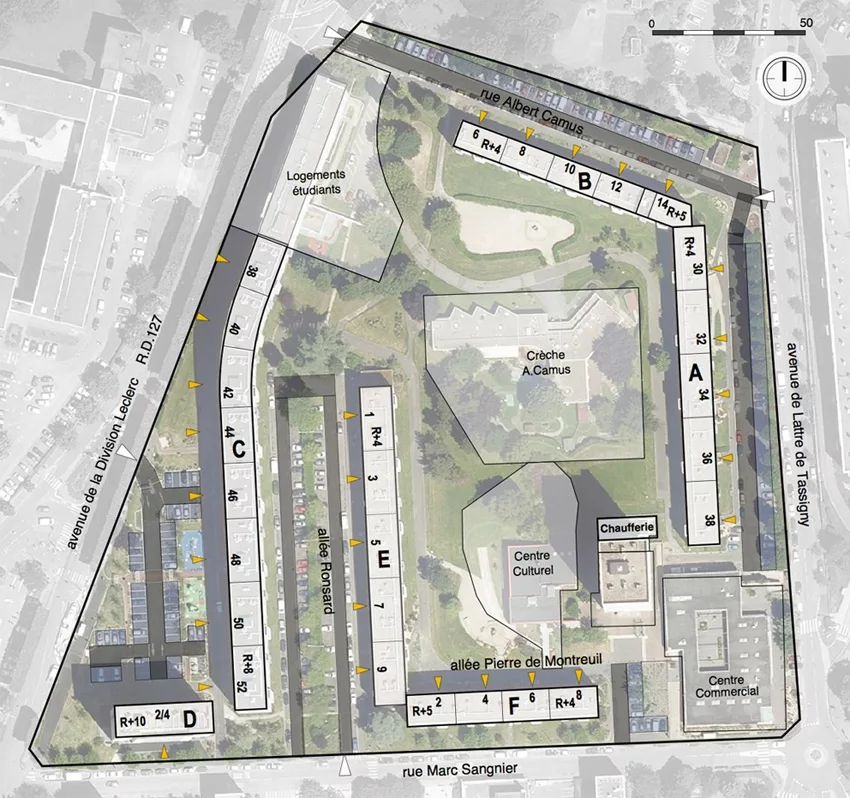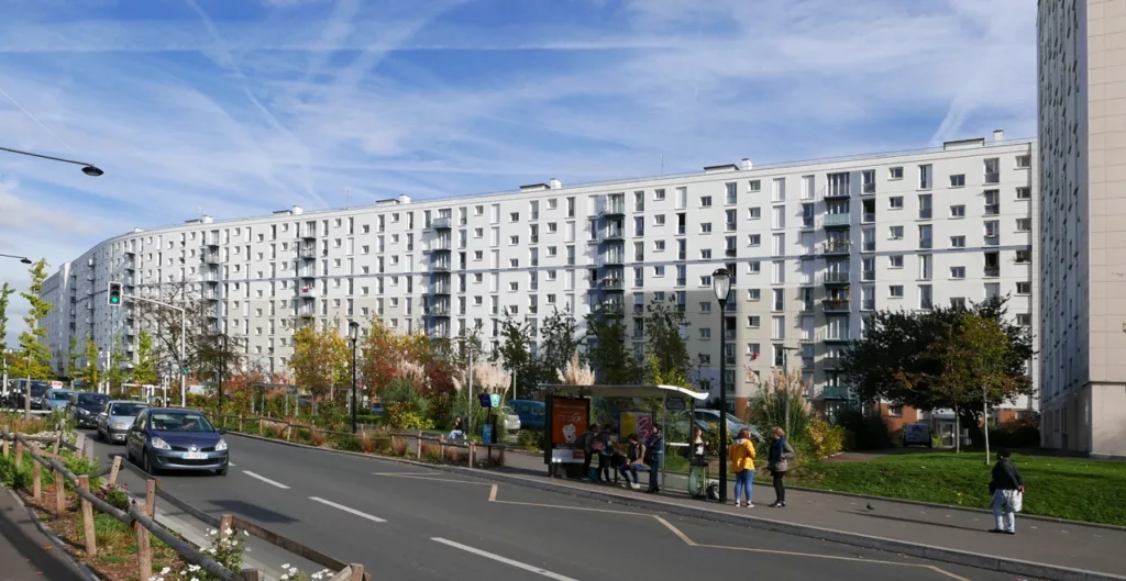 Le projet concerne la réhabilitation thermique de 497 logements occupés à Cachan (94), au sein de la résidence « Plaine 3 ». Il comprend l’isolation thermique par l’extérieur, le traitement des toitures terrasses, le remplacement des occultations et menuiseries, ainsi que l’agrandissement des balcons. Les parties communes sont rénovées : halls, électricité, interphonie. Les logements bénéficient de mises aux normes et d’une nouvelle ventilation. Le projet intègre des aménagements résidentiels (locaux tri, accès PMR, plantations) et est réalisé en présence d’amiante. Certification CERQUAL Patrimoine Habitat & Environnement.